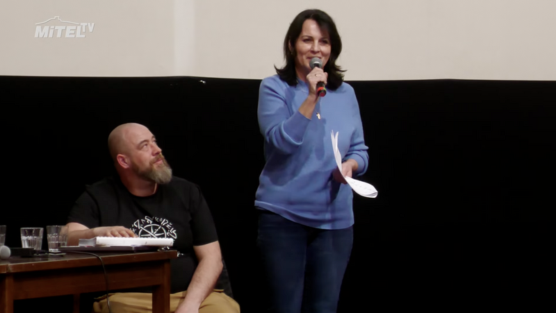 Katarína Ondrušová at a discussion in the Czech village of Mimoň. Source: Youtube/Reprofoto